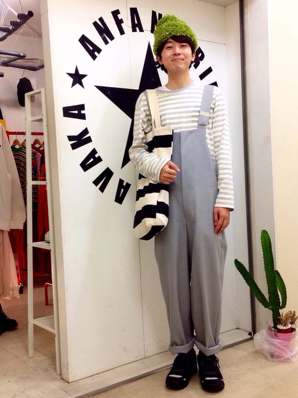 ohtaのサロペットに芝生みたいな帽子を添えて(^ ^)