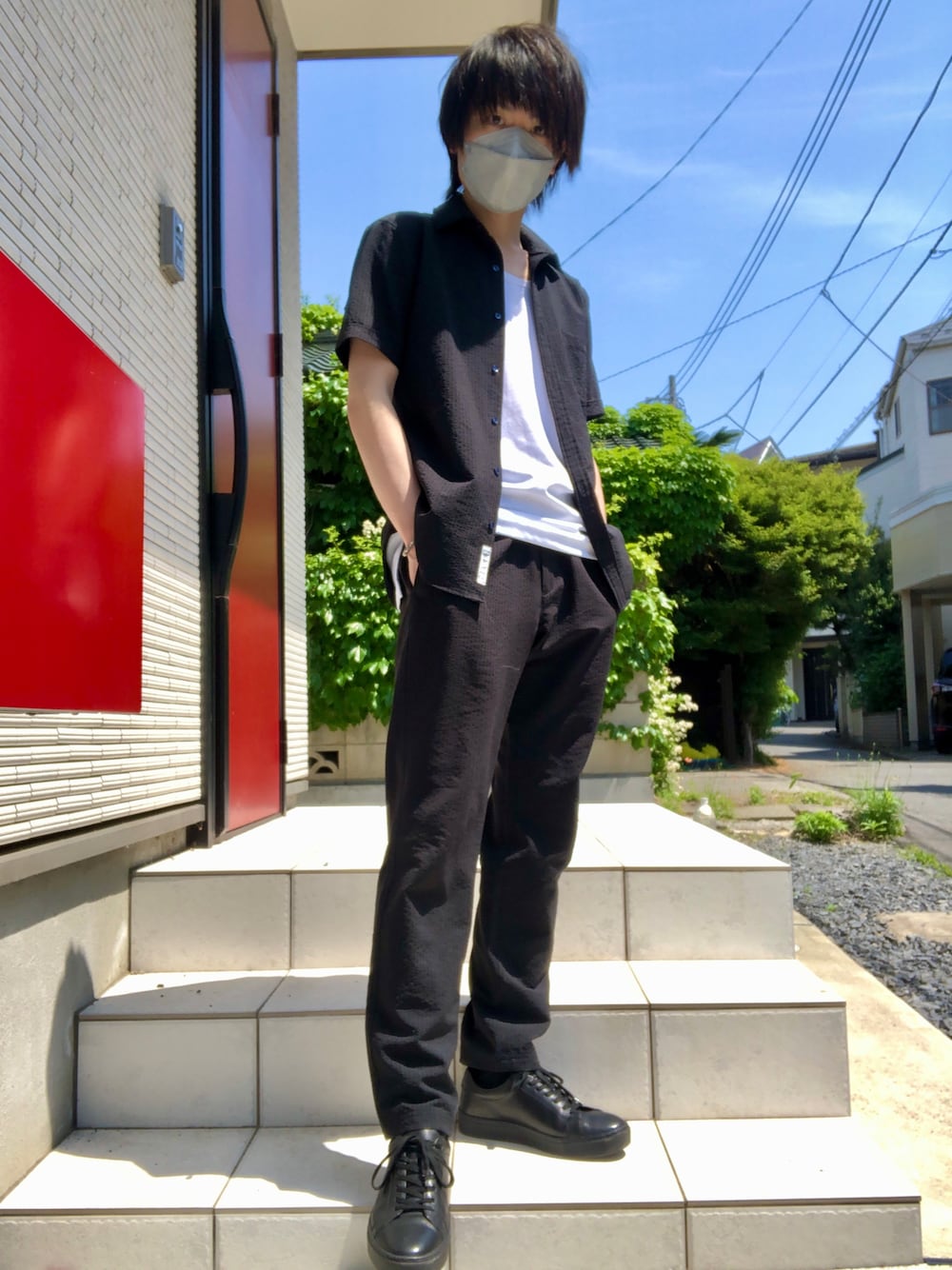 色、柄物好きが着るモノトーンコーデ🤍 暑い日はサラッとしたシャツ+パンツの リラックスセットアップが快適です😃✨✨