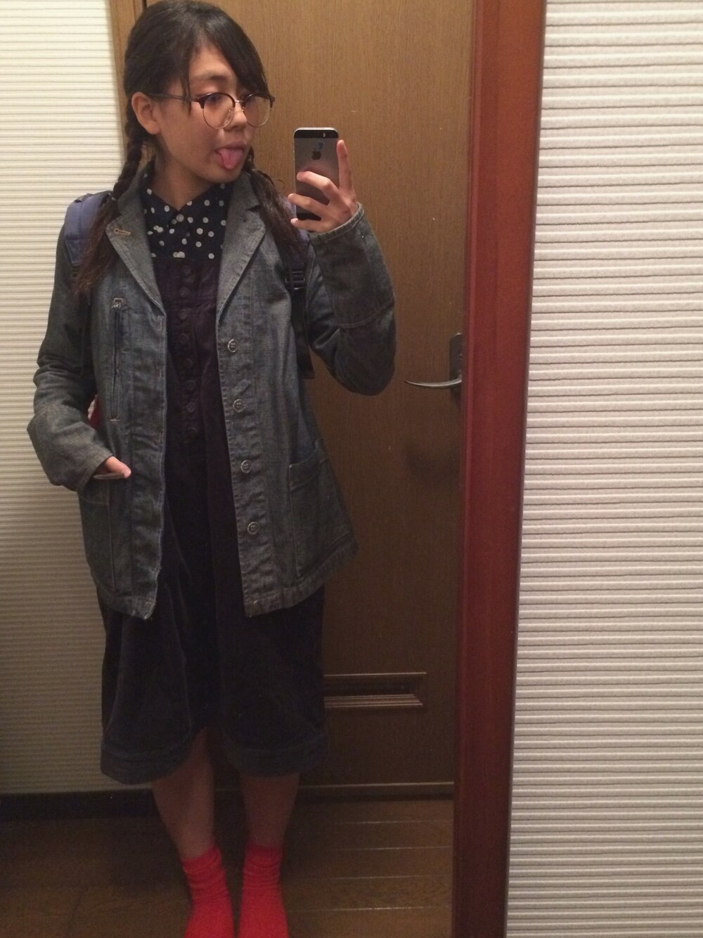 映画観賞DAY 水玉シャツとベアロのワンピースはママのおさがり 全部で2000円