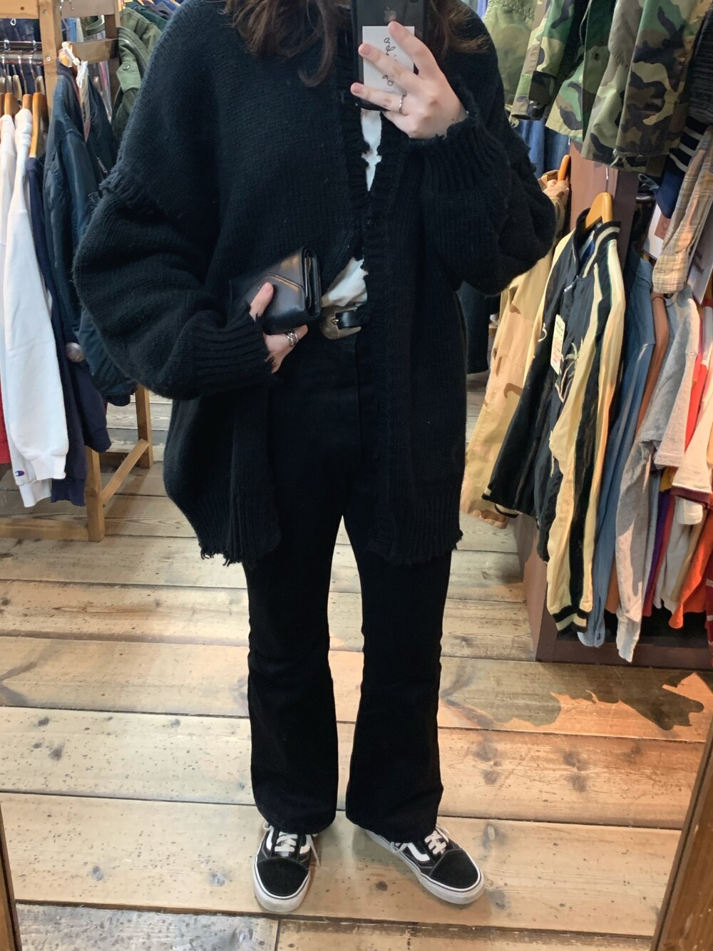オールブラックコーデ❕黒大好きすぎる、、 便利なwho'swhoのトップスをカーディガンとして着ました◎前はあえて開けずに着用しました!やっぱり黒かんわい〜!