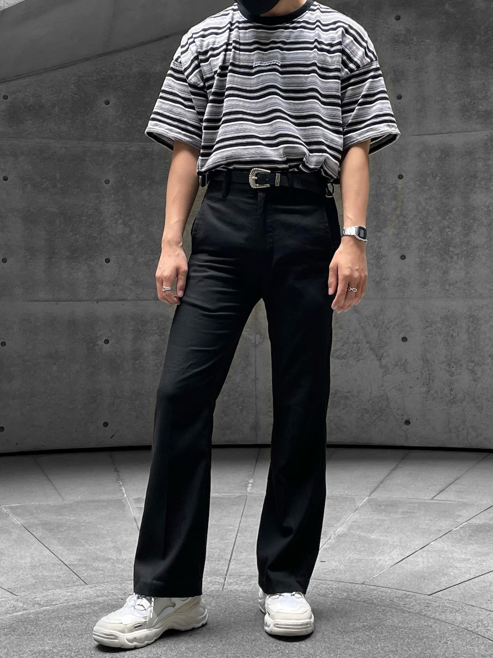 ⚪️⚫️ 【韓国系×プチプラコーデ】 GU×studiosevenのコラボTシャツに黒のフレアパンツを合わせました! タックインすることによって脚が長く見えて、フレアパンツなので足が細く見える効果もあるんでめっちゃおすすめです😆 インスタもやってるので是非チェックしてみてね✨