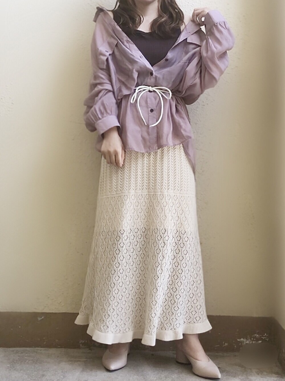 スモークピンクのシアーシャツで大人可愛いコーデ🥰💓 pair pairさんのシアーシャツ着回し率めっちゃ高いです! Instagram→@omu_wear