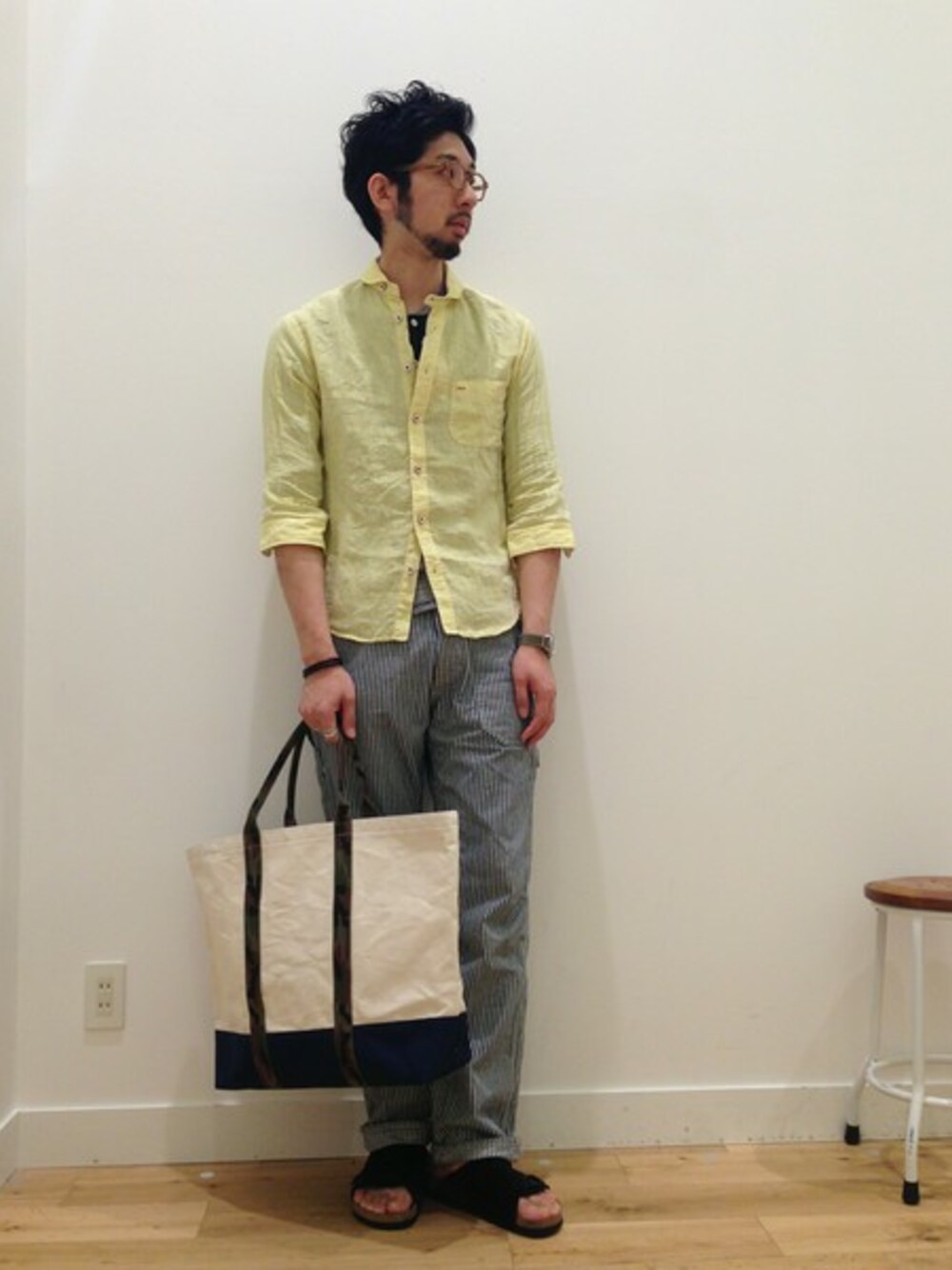 リネンならではのイエローの優しい発色。 7/Sなのでフルレングスのボトムスとの相性も良いです。