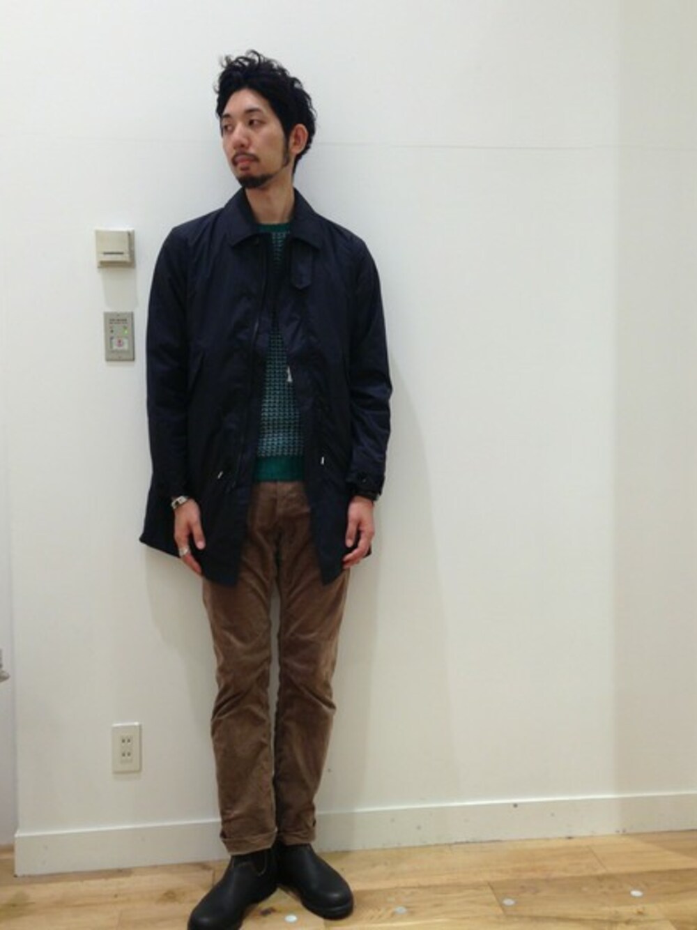 インナーのニットとボトムスはアースカラーで秋らしく、ブラックで印象を締めました。