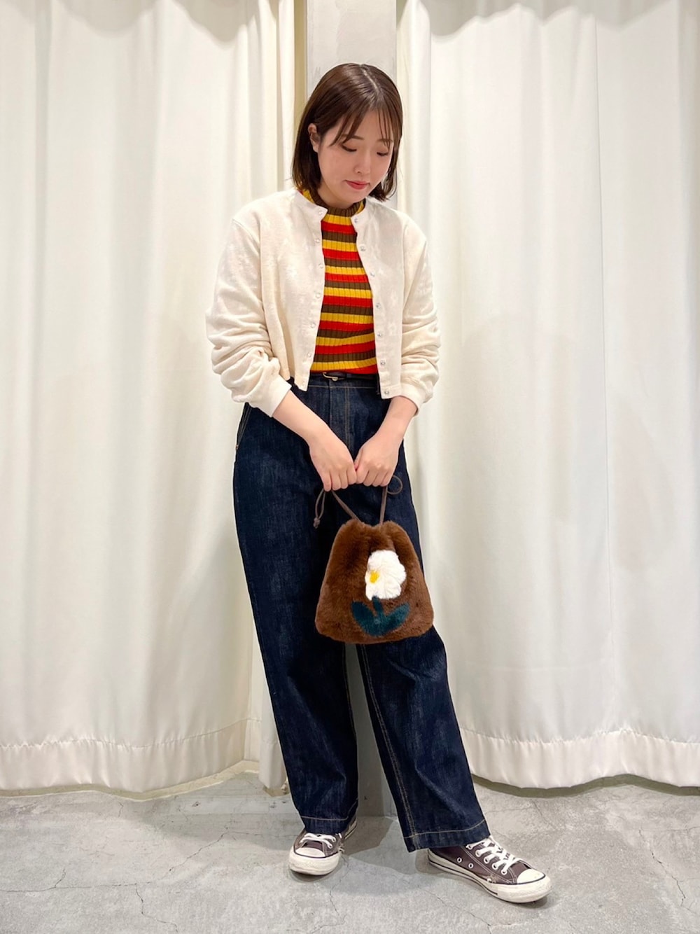 Dot&Stripes CHILDWOMAN(Dot&StripesCHILD WOMAN.atelier)のトートバッグ「フェイクファー はめ込み花モチーフ巾着バッグ」を使ったコーディネート
