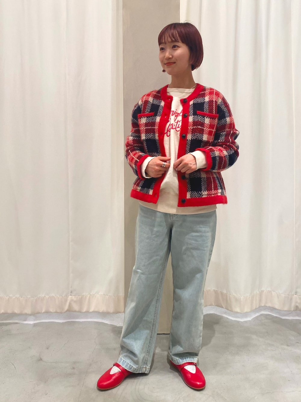Dot&Stripes CHILDWOMANのカーディガン/ボレロ「モヘヤ混タータンチェック ポケットカーディガン」を使ったコーディネート