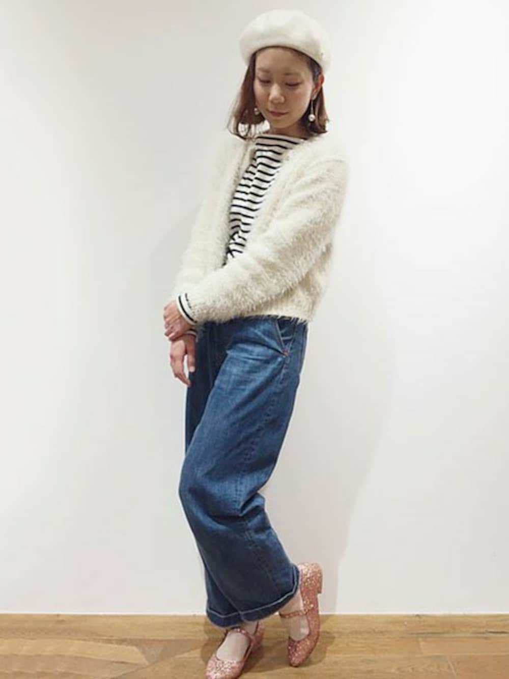 Dot&Stripes CHILDWOMANのニット/セーター「ロービングフェザーヤーン ショートクルーネックカーディガン」を使ったコーディネート