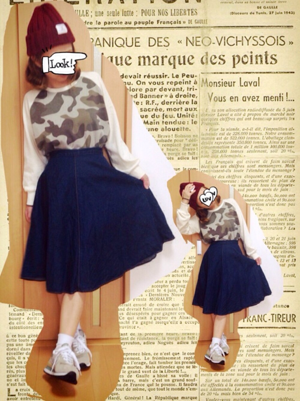 GUのデニムスカート、1600円とは思えないほどの着まわし力! ウエストインもしやすくて着やせ効果抜群! プチプラコーデ最高。