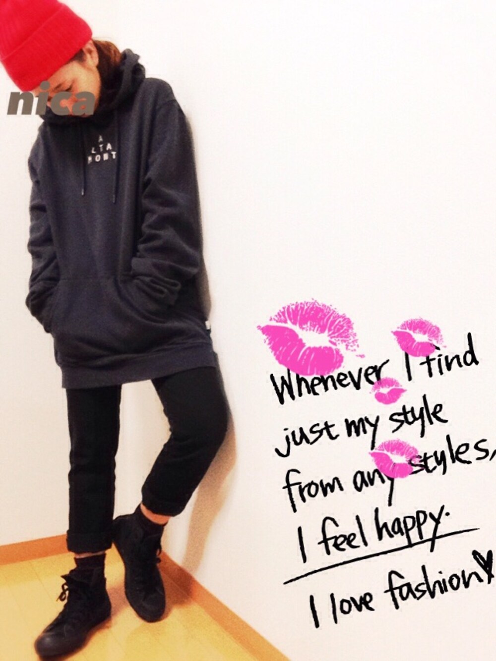 パンツはGU。真っ赤な帽子で差し色的な。 ザ・ラフ。 お返しを期待しない。 感謝の言葉も求めない。 それが、本当の奉仕。 瀬戸内寂聴