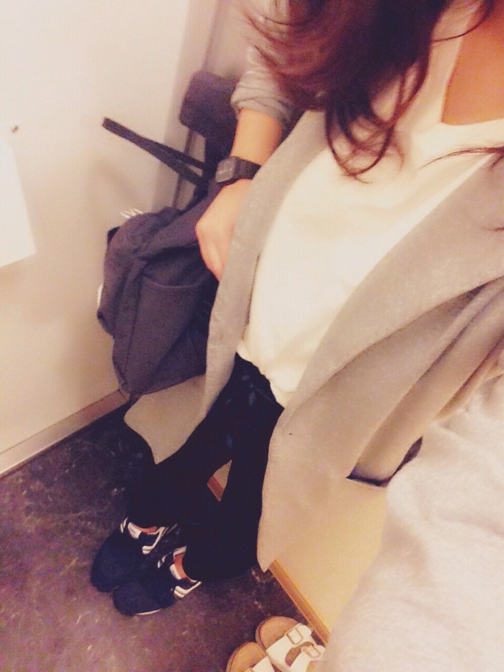通勤時は羽織りが必要な季節に なりましたね〜〜。秋ですね。🍂 あっ。下半身以前の着まわしです。