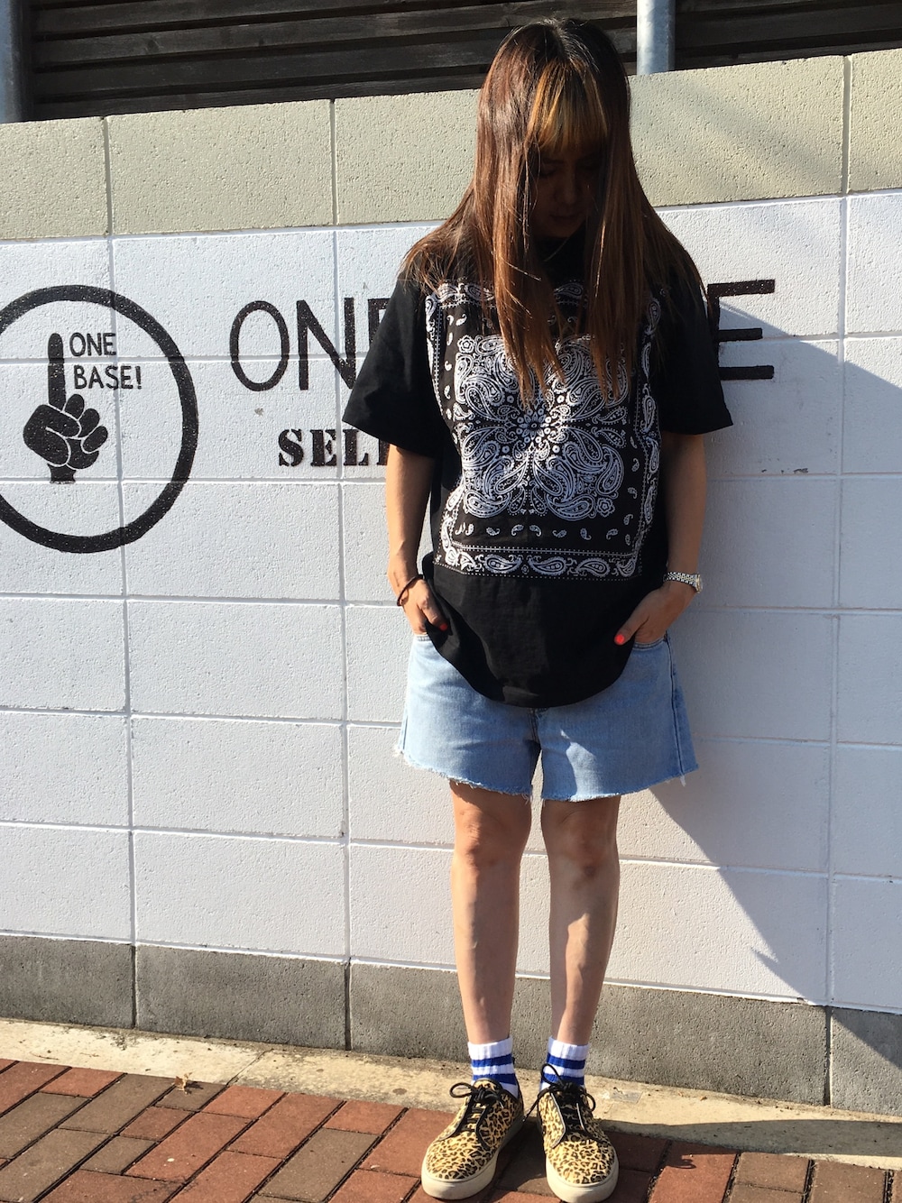 デカTシャツにバンダナ柄😊