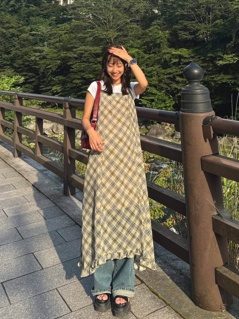 白Tのバリエーションに飽きた時は重ね着❗️ デニムに白Tの上からキャミワンピ羽織るだけで一気に女の子コーデに🤍