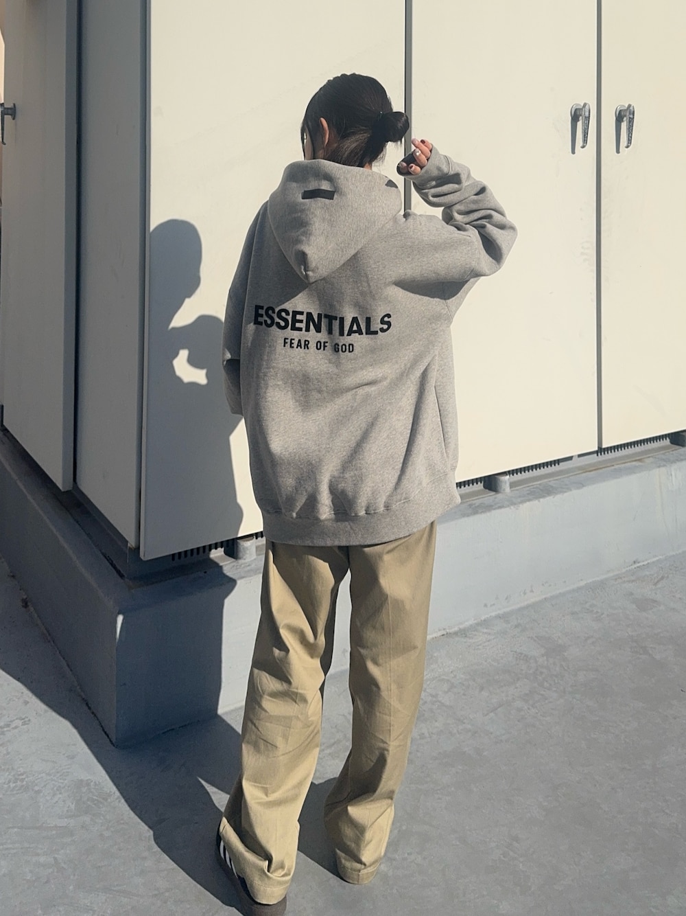 rooptokyo_ir(ROOPTOKYO)のパーカー「FOG ESSENTIALS/エッセンシャルズ BACK LOGO SWEAT HOODIE フーディー バックロゴ プルオーバーパーカー オーバーサイズ」を使ったコーディネート