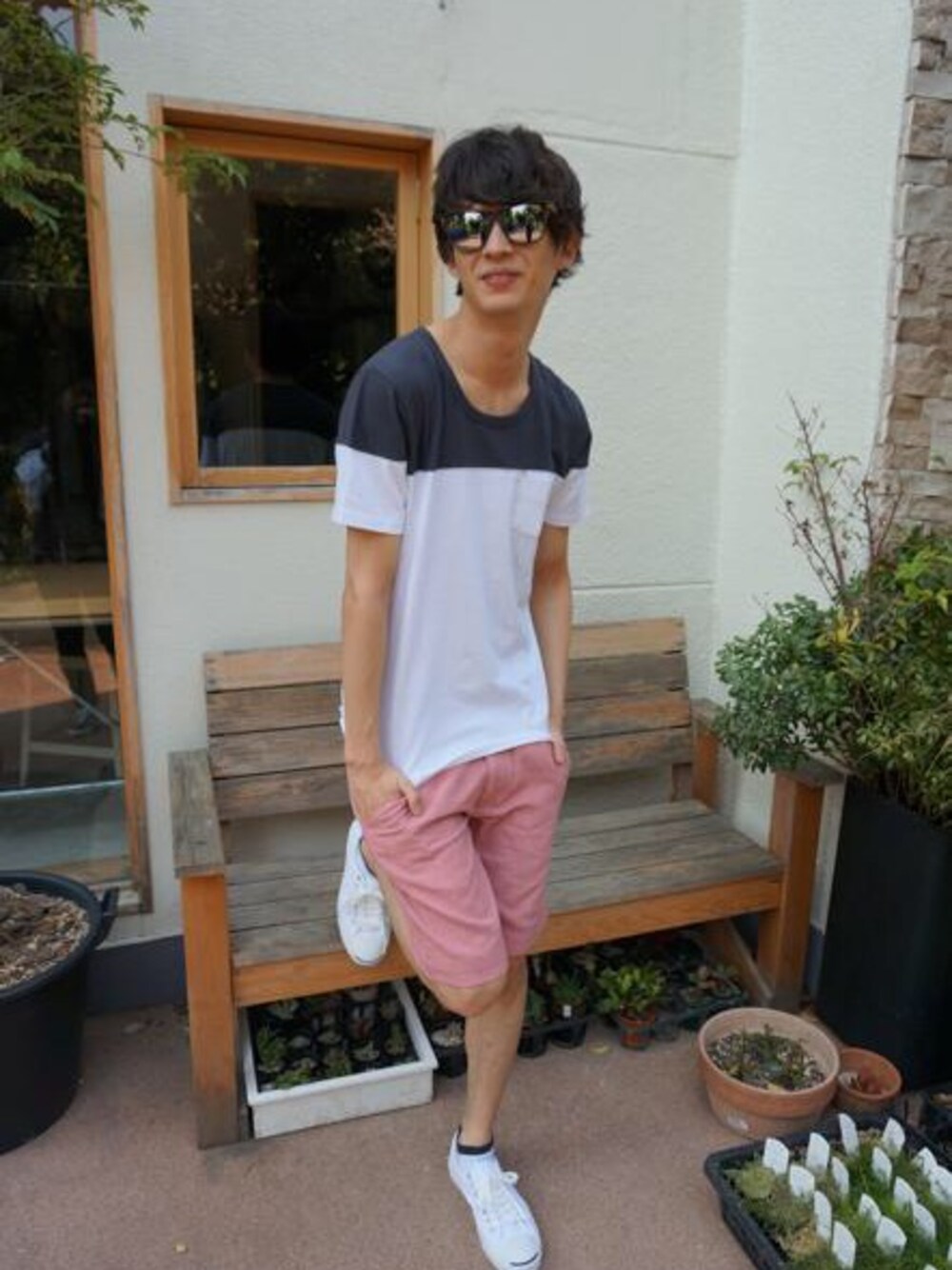 バイカラーの無地Tにピンクのショーツをあわせてみました^_^