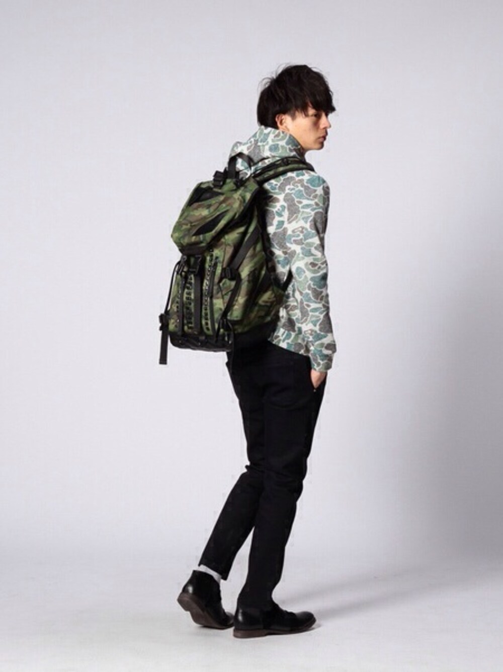 トレンドSTYLE!! カモフラージュのスウェットパーカーとスタッズリュックでコーディネートしてみました〜