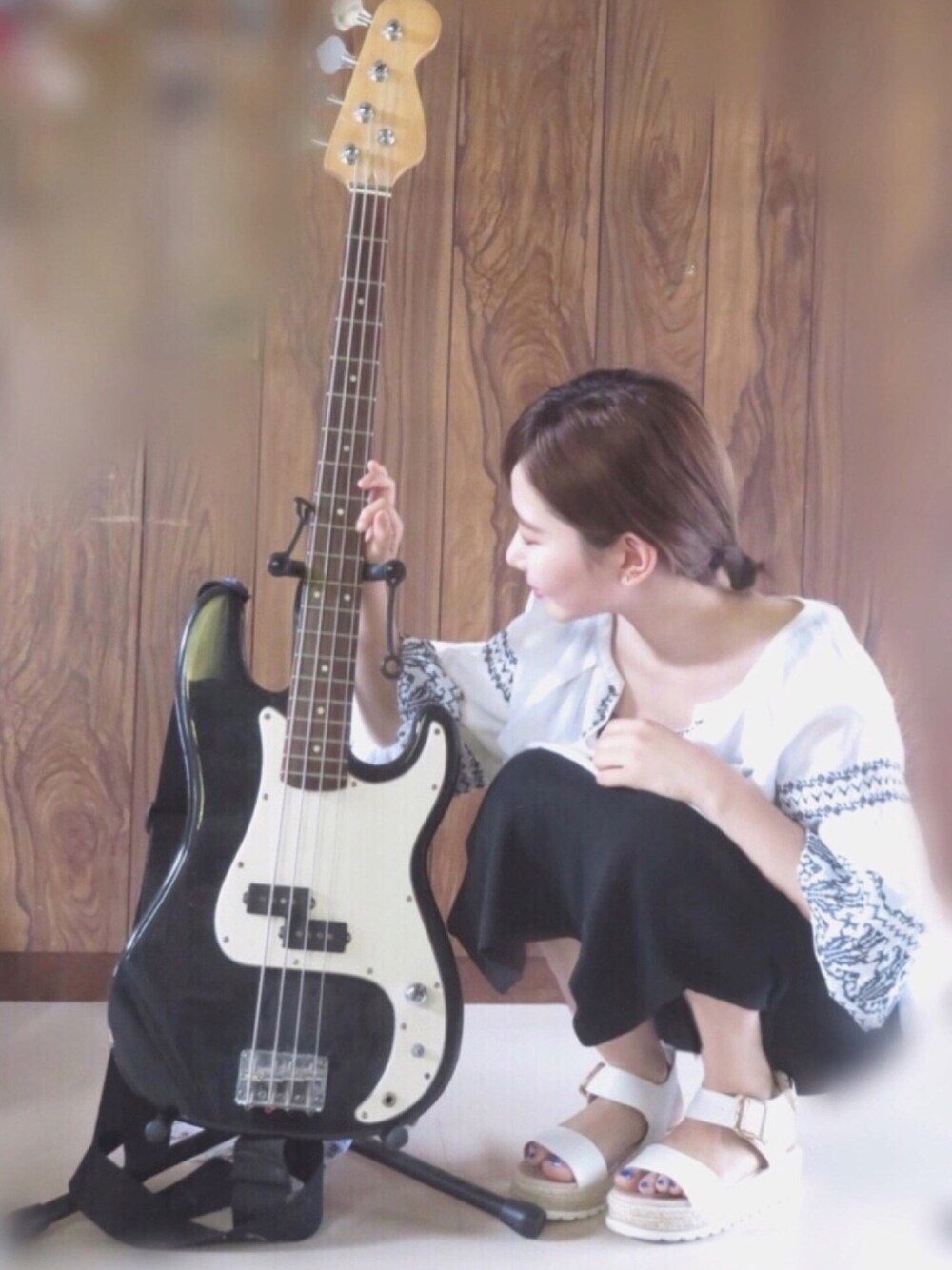 ㅤ 写真でも伝わるチビ感 、 学生時代 ベース担いで登校してたら 先生に バズーカ担いでると思った 、 て意地悪を言われた憶えがあります 😑 トップスは去年のアイテムです トップスに白持ってくるだけで 涼しく見えますね ! 今年の梅雨は 雨が少ないのかな とても暑いです ☀️ ㅤ