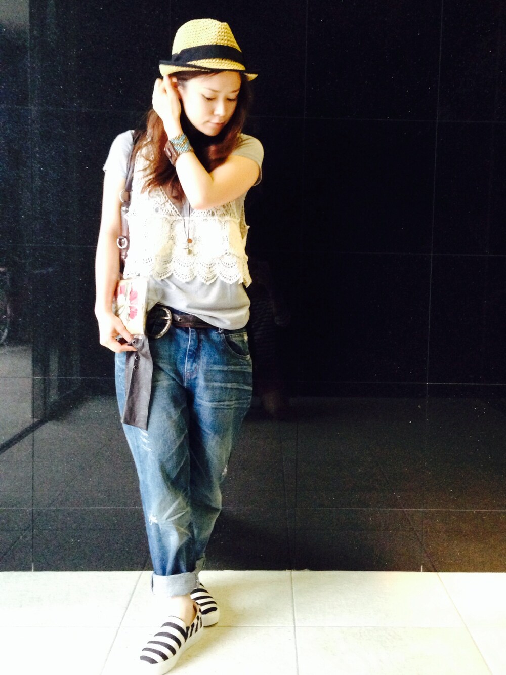 onesachiのハット「ストローハット 」を使ったコーディネート