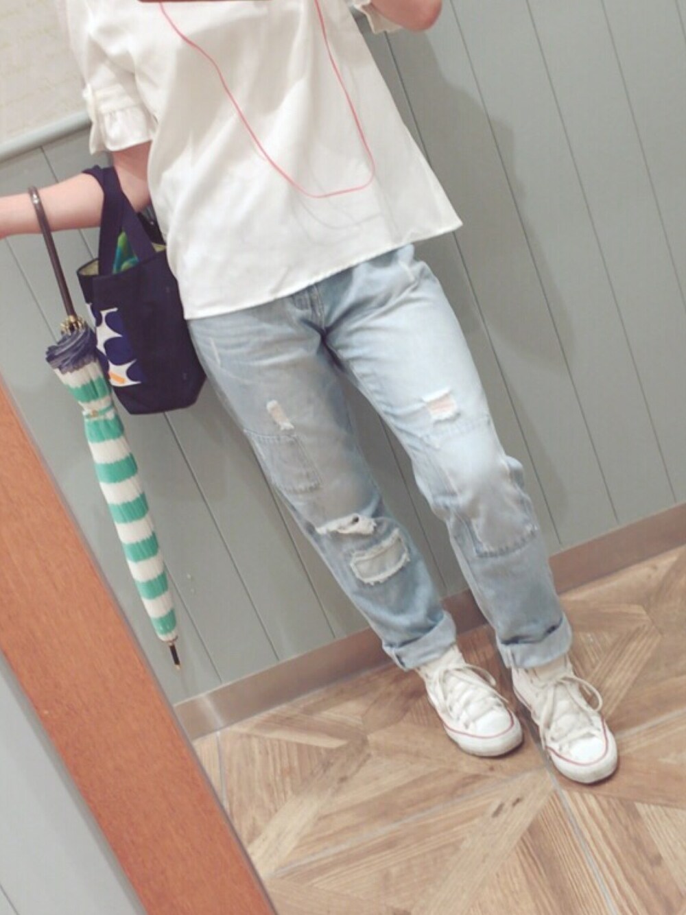 傘はplazaにて購入😁 上のシャツは袖がとってもカワイイ! リボン付き🎀 最近かわいい系にはまっている😫💗💗