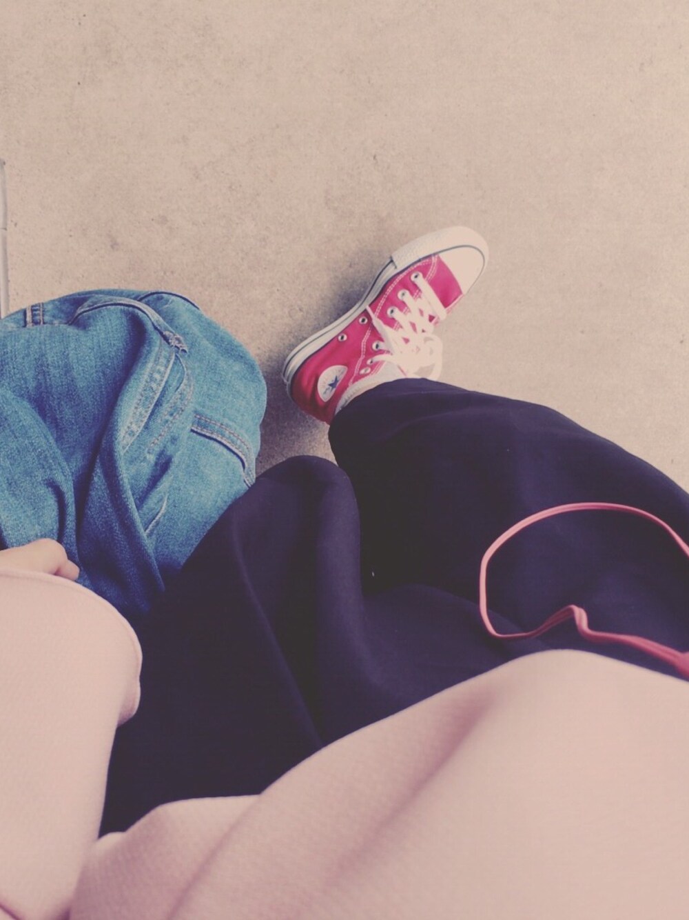 だいぶ前のコーデです☺️👌👌 七分丈パンツを生かしてコンバースハイカットです😁💖 コンバースひとつあるだけでもう気分上がりますよね(*-∀-*)