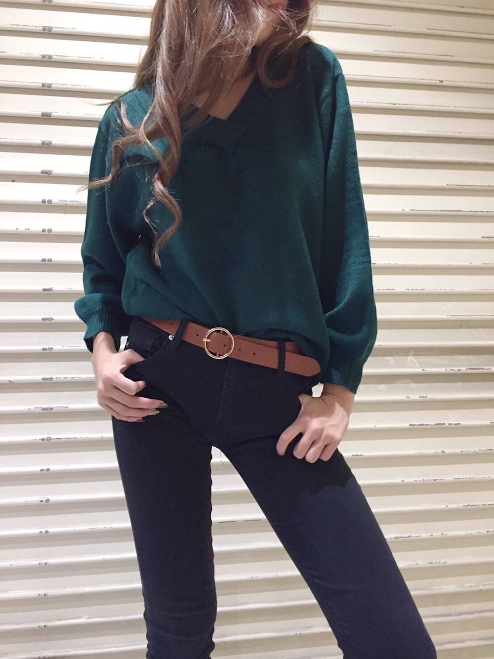 シンプルなコーディネートにはサークルモチーフのベルトをプラスしてコーデを引き締めるのがおススメ🙆💕