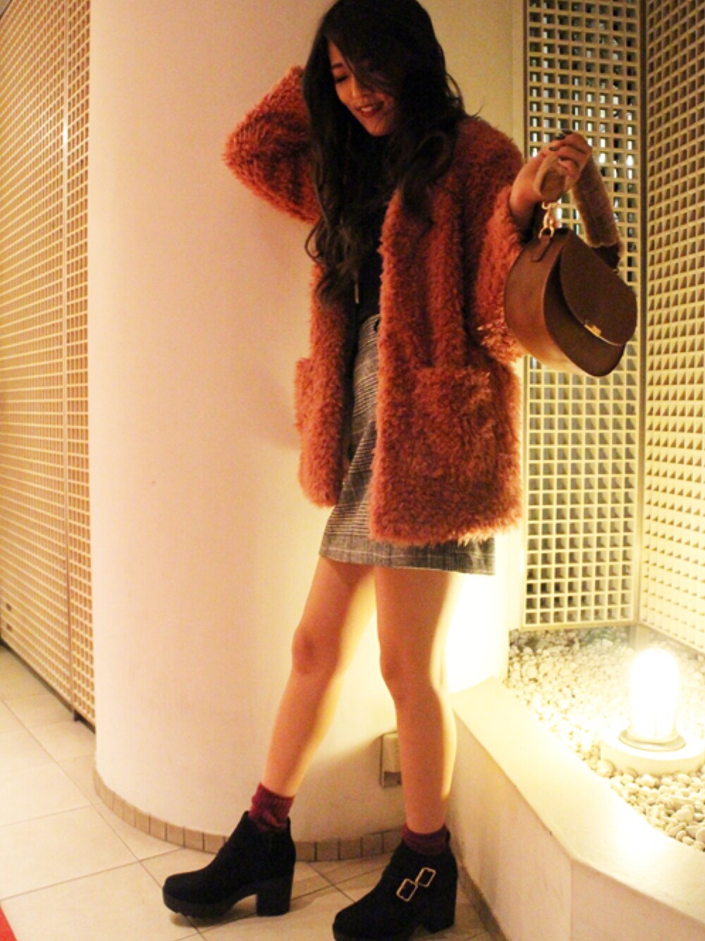 onewayのショルダーバッグ「ファーハンドル3WAY BAG」を使ったコーディネート