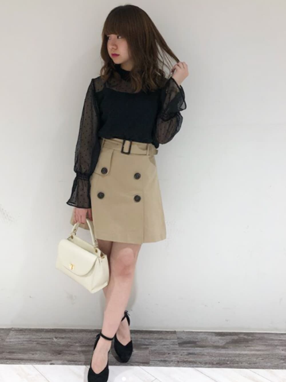 トレンドのドット柄はトレンチスカートと合わせてよりレディな印象に💋✨
