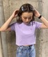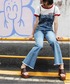 デニムのサロペットはバタフライ刺繍がポイントのショートTと合わせたコンパクトな着こなしが◎
