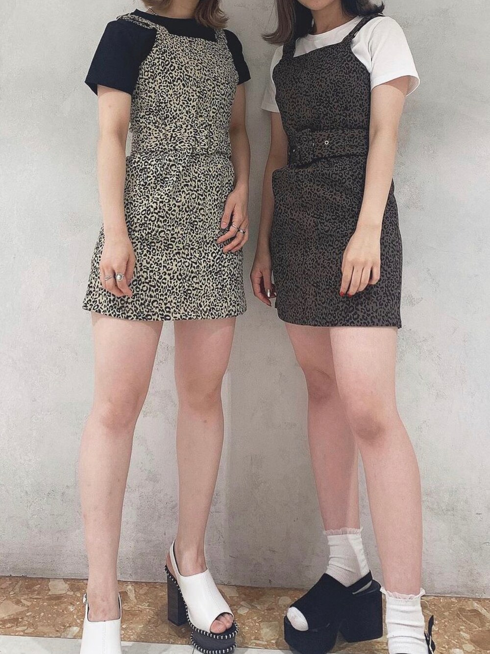 タイトシルエットが女性らしいジャンスカは双子コーデが◎ ヒョウ柄がコーデのアクセントに!