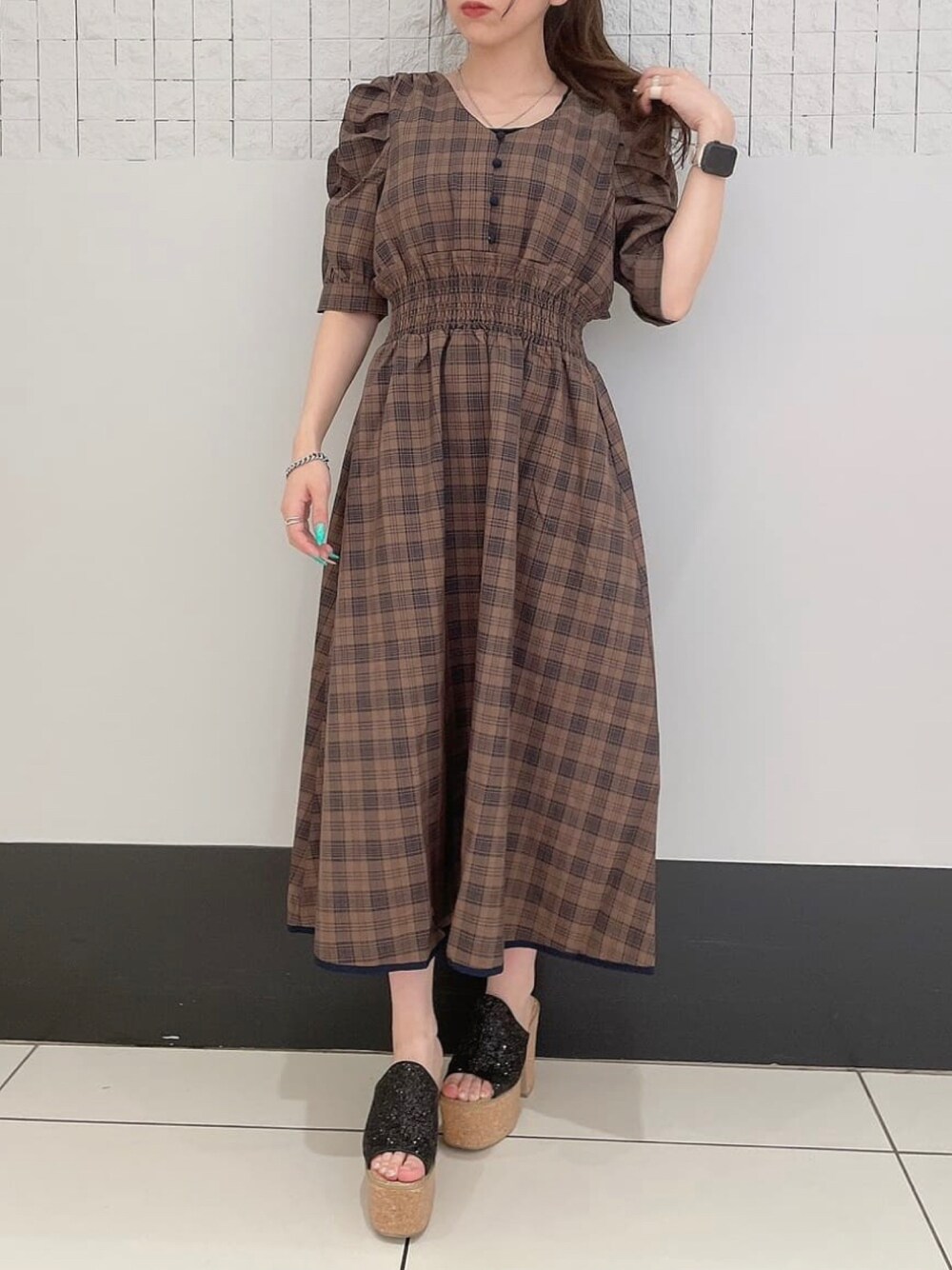 onewayのワンピース「【NOMAE】チェックギャザースリーブワンピース」を使ったコーディネート