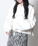 ボリューム感たっぷりのパーカーはゼブラ柄のスカートと合わせたモノトーンコーデが◎
