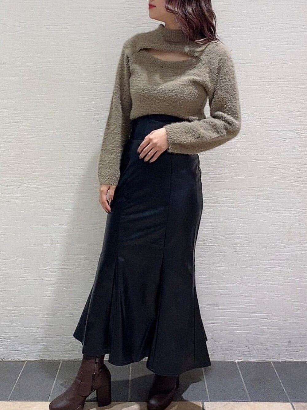 胸元の開いているデザインが今年らしいセクシーなニットトップス♡ ふんわりとしたシャギーニットがレディーライクな印象! タイトすぎないすっきりシルエットで着ぶくれも解消できる♪