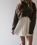 ボリュームのある袖にクロップド丈が絶妙なバランスのダメージニット! トレンドのクラッシュディティールがデザインポイント♪ ラウンドヘムでスタイルUP◎