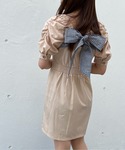 前からでも後ろからでも可愛らしさが360度につまったミニワンピース。 背中に施された大きなリボンをはじめ、 デコルテ周りを綺麗に見せるスクエアネック、ボリューム感たっぷりのギャザースリーブ、さらにフロント部分に施された大きなボタンなど女の子らしさ満点のアイテム。 身頃のカラーに合わせてリボンの色が異なりますので カラバリでも持っていたい最愛の1枚です♡
