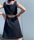 ビスチェとハイウエストスカートを合わせた様なデザインとバックのさり気ない肌見せがアクセントになるミニ丈ワンピース。 フロントにはシルバーリングファスナーで目を引くデザインに♡ 裾はフリンジデザインをポイントに、 スクエアネックでデコルテが綺麗に見えるカッティングに◎ 後ろの開き部分にはゴムが施されており、程よくフィットしてくれるよう仕上げています!