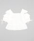 程よい肩あきのディテールとスクエアネックのデザインが女性らしさを演出する1枚。 さらにヴィンテージ感をプラスするレトロな花柄と合わせやすいホワイト・ブラックのカラバリも嬉しいポイント。 ショート丈なのでハイウエストのスカートと合わせて上品な女性らしいスタイリングに。