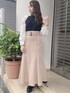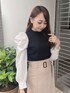 ベージュ系のスカートを着用したレディースの秋コーディネートの2枚目の写真