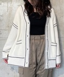 ざっくりとしたオーバーサイズで着られるカーディガン。 ハンド風の配色ステッチがポイント♪ コーディネートにプラスするとトレンドライクなスタイリングに。