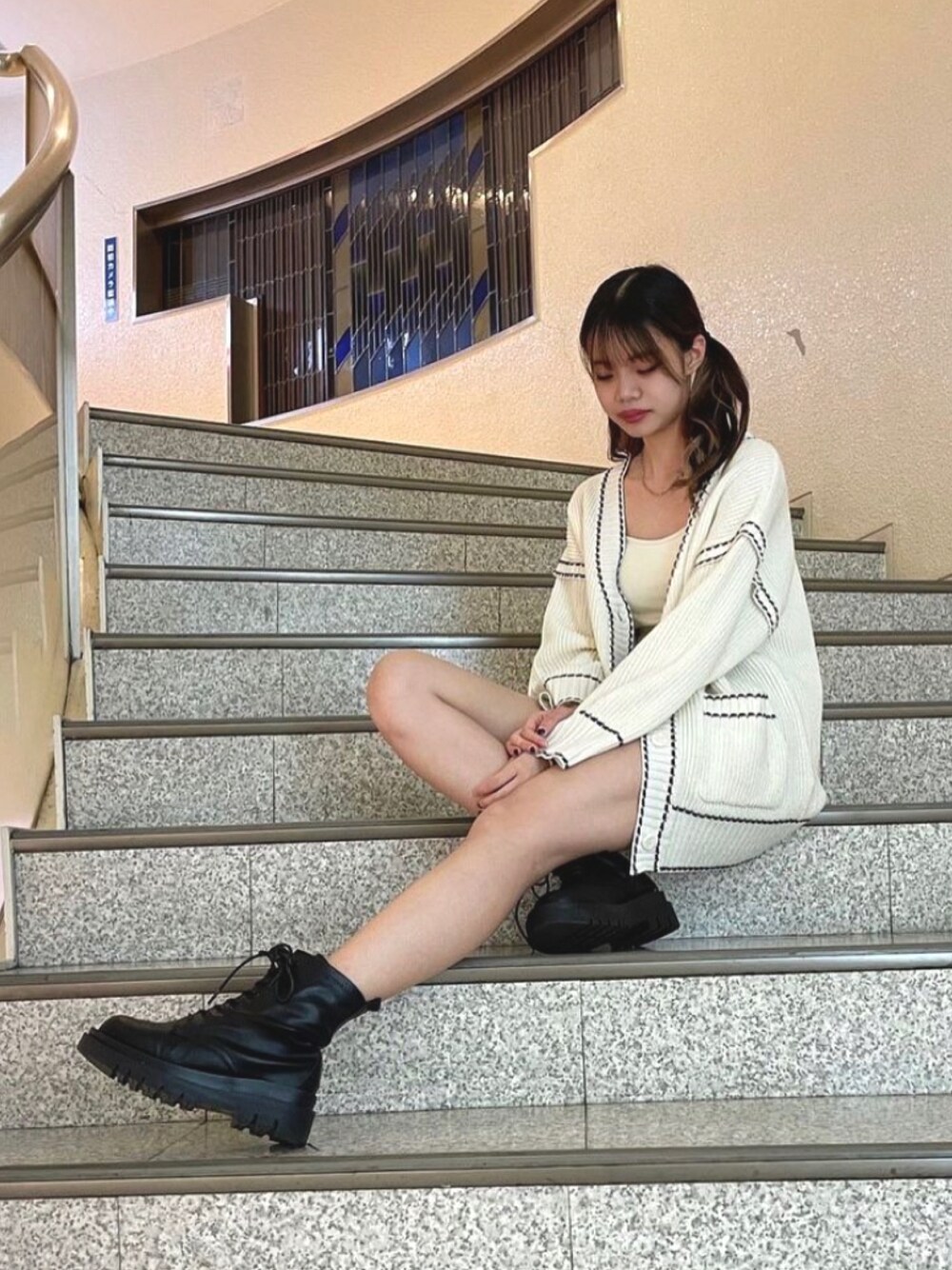 onewayのカーディガン/ボレロ「配色ステッチカーディガン」を使ったコーディネート