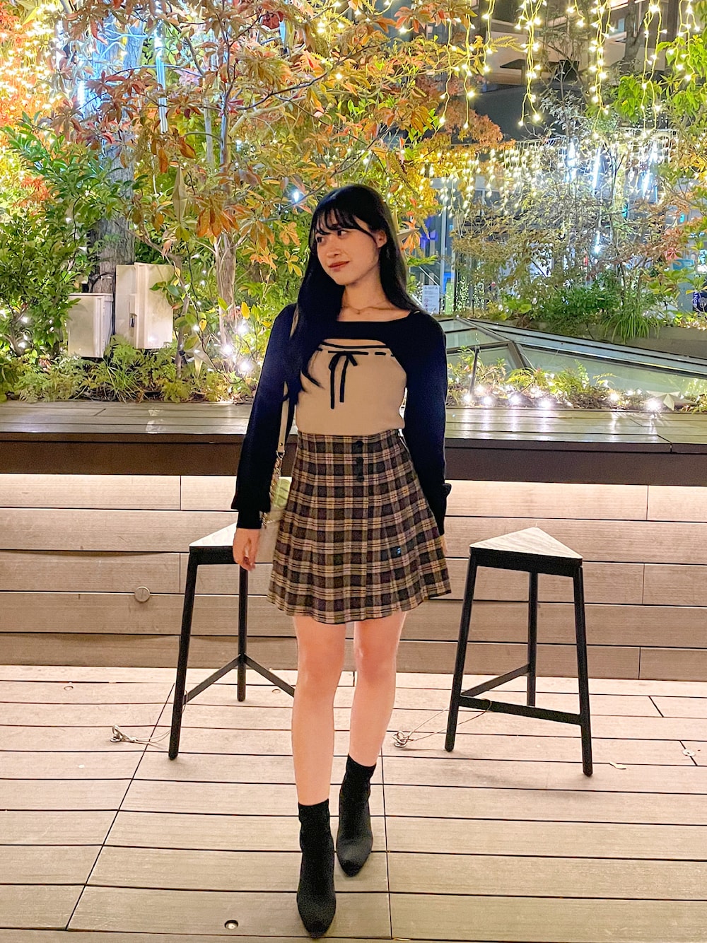 トップスは流行りのボレロがレイヤードされたようなデザインでかわいい! ボレロはくっついているのでインナーを気にしないで着れちゃいます♡