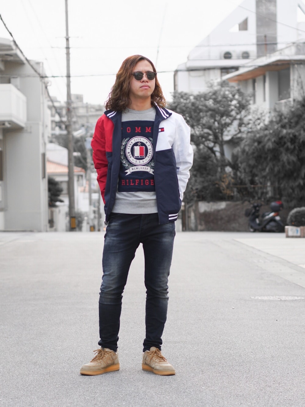アウターはリバーシブルなのです。 tommyっぽさ全開でお届けです。 上はビックサイズ、下はスキニーで 細ーくみせてます。