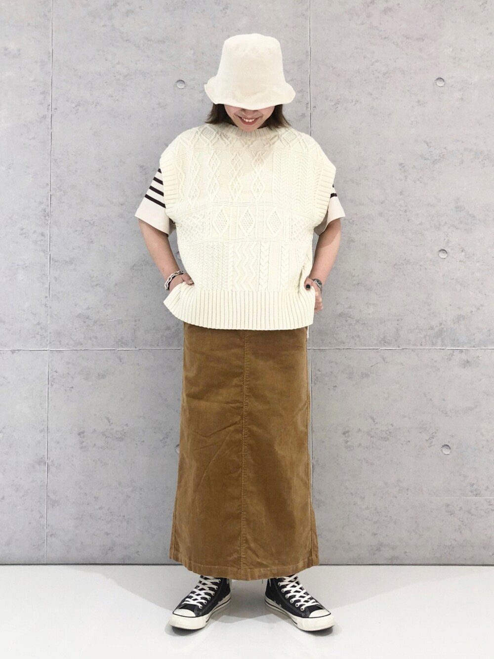 エムアイ(LEPSIM 阿倍野キューズモール店)のスカート「ストレッチコーデュロイスカート 947918」を使ったコーディネート