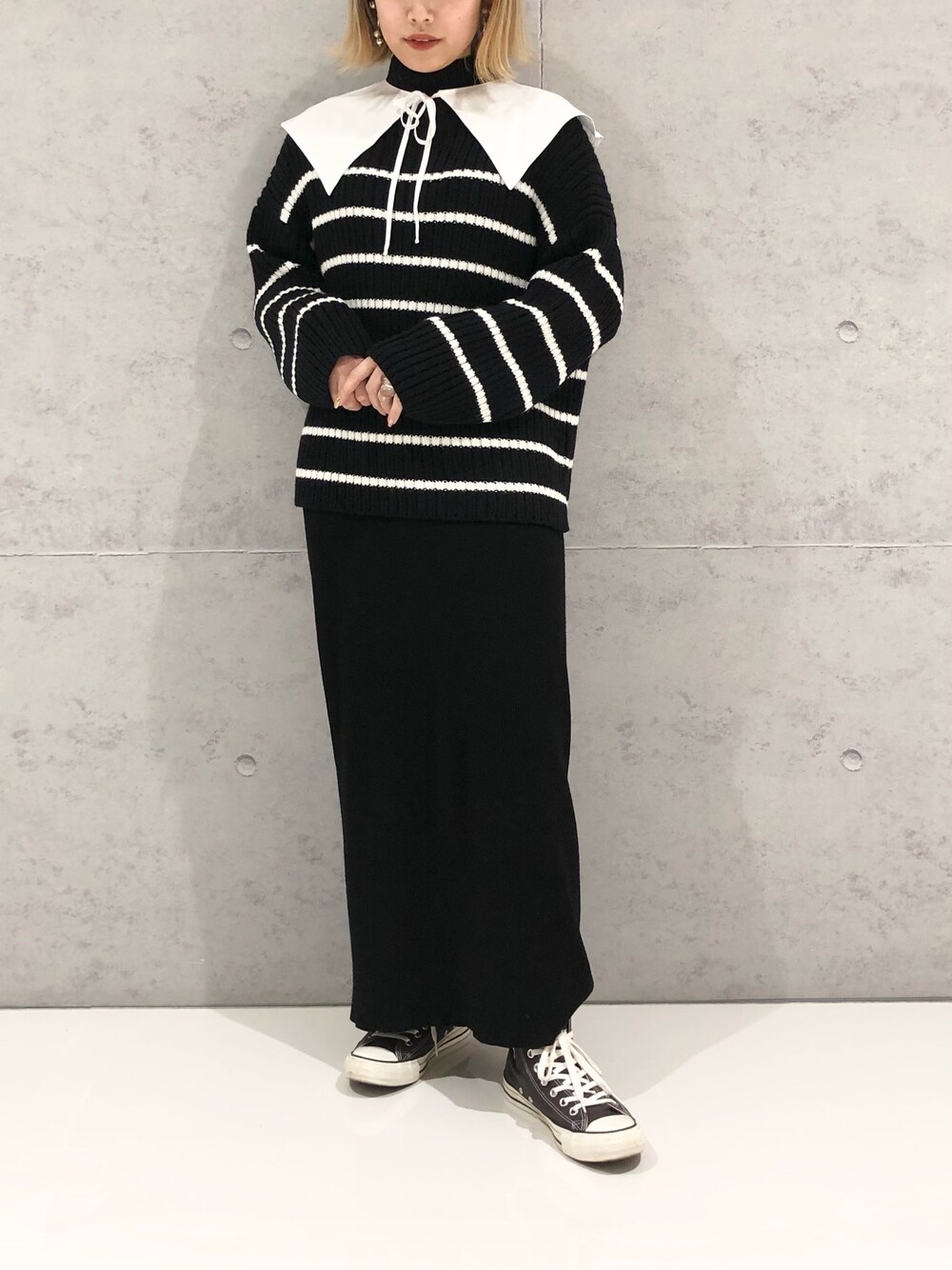 ———————————— .st staffboard⇨エムアイ Instagram⇨@lp_em_i —————————————— 付け襟があるかないかで、雰囲気ガラッと変わる✨上下ブラックでも、間に白色が挟まると重たく見えないです! ニットスカートは、普通の洗剤で平干ししたところ、形も崩れることなく洗濯出来ました。10回以上着用していますが、毛玉もできていません😦ふしぎ〜