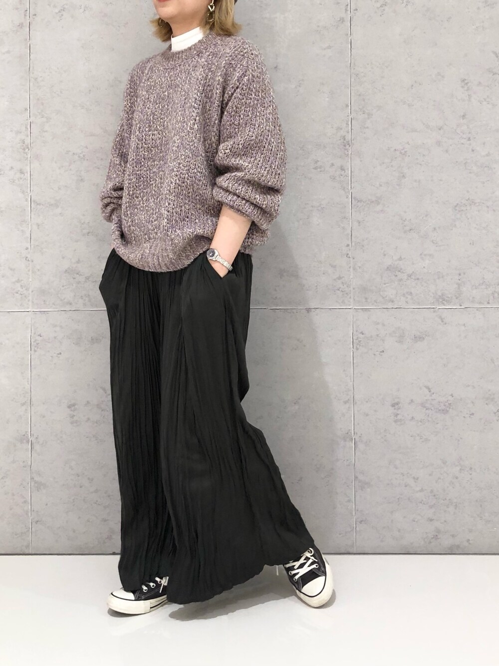 ————————————— .st staffboard⇨エムアイ Instagram⇨@lp_em_i —————————————— ふんわりとした色合いのニットは、暗くなりがちなコーデを華やかにしてくれます!タポッとしたボリューム袖で、華奢見えします✨ スカーチョはトールサイズを選びました。トールと言うだけあって、しっかり長さがあります。ブーツに合わせるならフリーサイズ、スニーカーに合わせるならトールサイズがおすすめです。