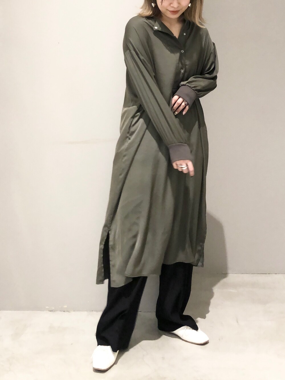 エムアイ(LEPSIM 阿倍野キューズモール店)のマタニティウェア/グッズ「【野尻美穂さんコラボ】マタニティ/Vサテンキリカエワンピース 261488」を使ったコーディネート