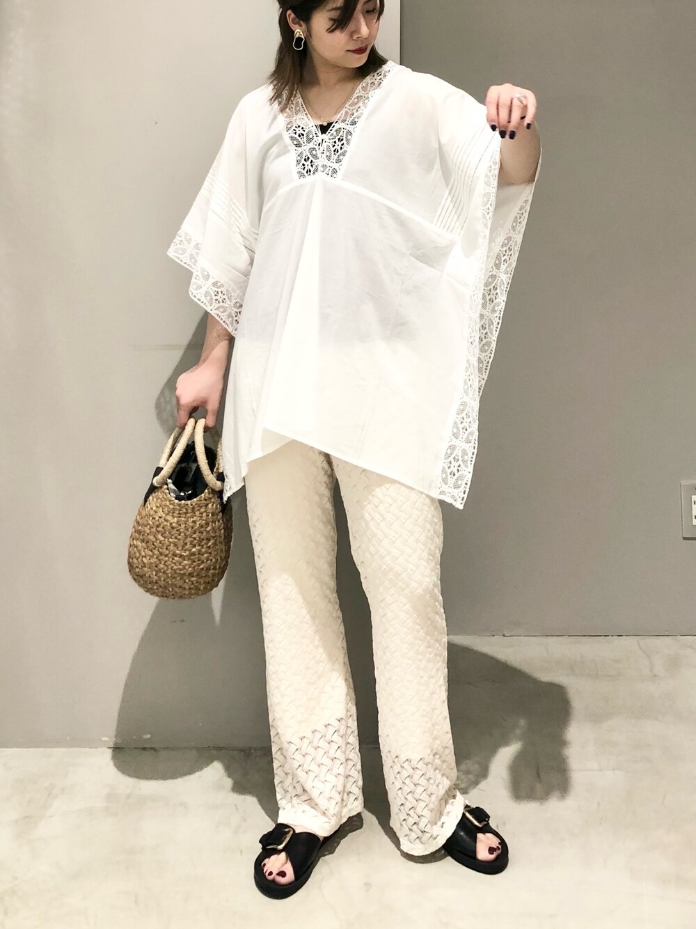 エムアイ(LEPSIM 阿倍野キューズモール店)のかごバッグ「アバカラウンドハンドルバッグ 267731」を使ったコーディネート