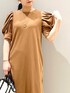 エムアイ(LEPSIM 阿倍野キューズモール店)のワンピース/ドレス「ソデタックパフスリーブロングワンピース」を使ったコーディネート