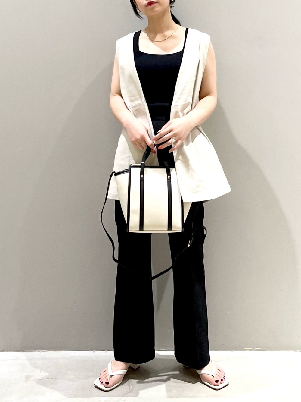 エムアイ(LEPSIM 阿倍野キューズモール店)のベスト「リネンブレンドショートジレ 255384」を使ったコーディネート