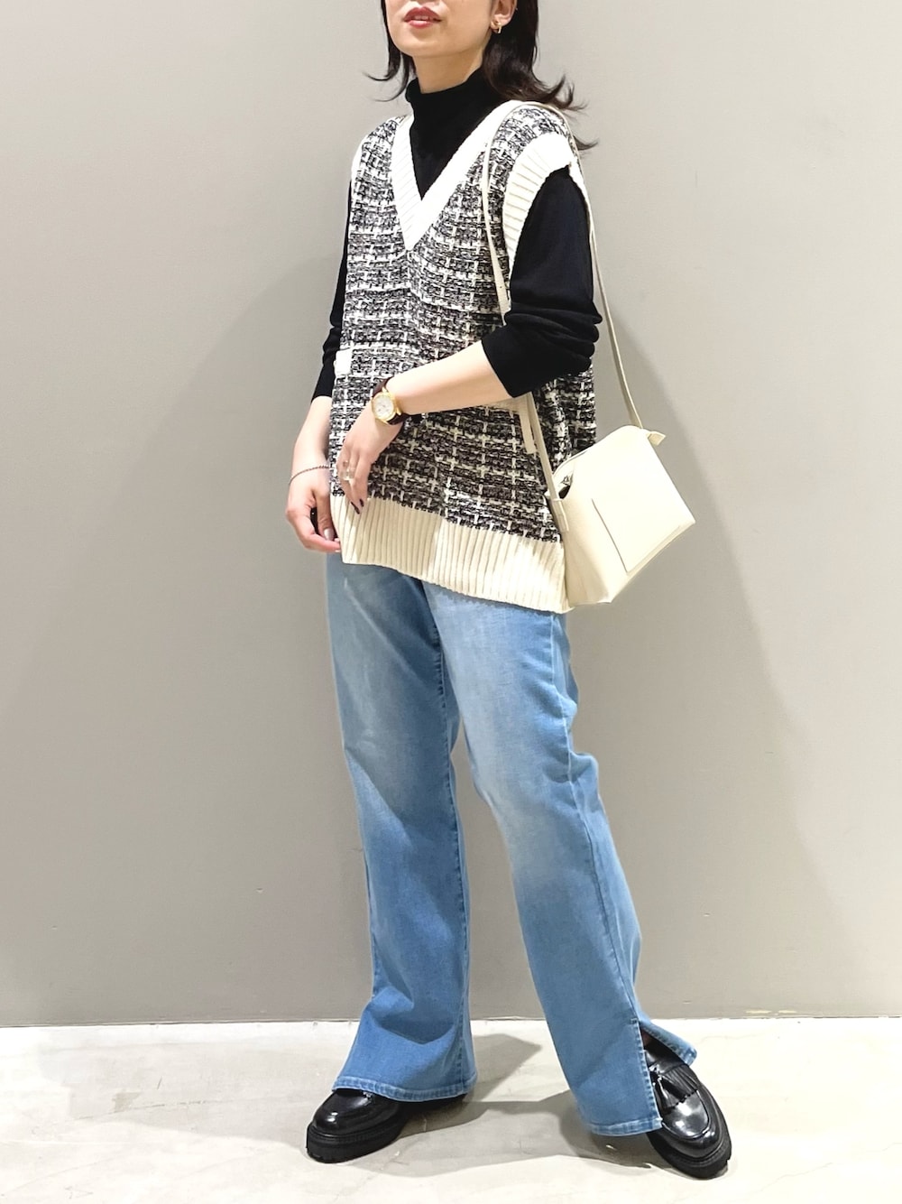 エムアイ(LEPSIM 阿倍野キューズモール店)のデニムパンツ「フレアスリットデニムパンツ 295668」を使ったコーディネート