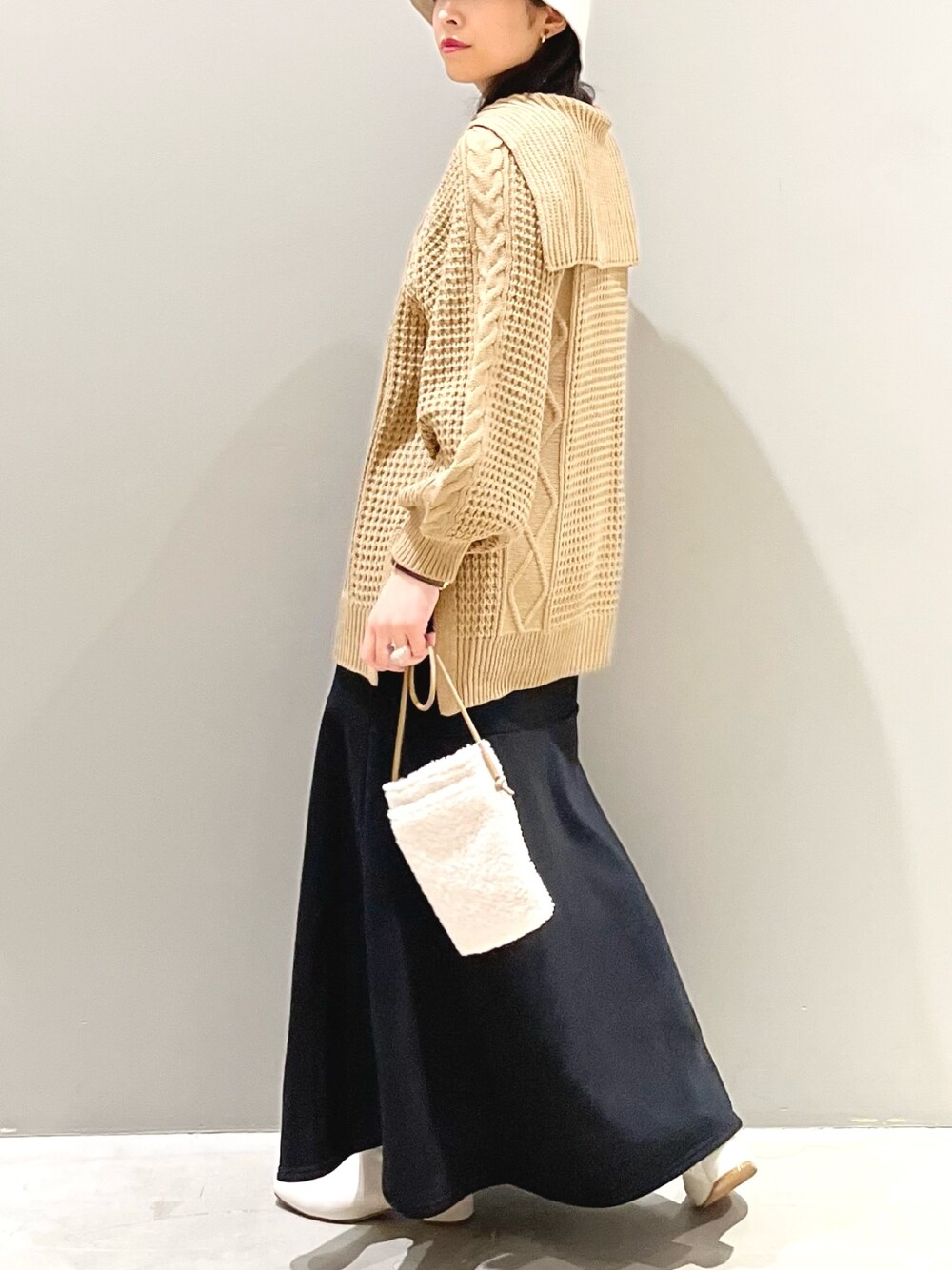 エムアイ(LEPSIM 阿倍野キューズモール店)のニット/セーター「マタニティ/5ゲージケーブルプルオーバー 164202」を使ったコーディネート