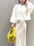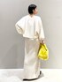 いつもご覧頂きありがとうございます✨☺️ フォローもして頂けると、とっても励みになります! ▷ニットは、袖のボリューム感がかわいい!袖をあげて、タプっとさせるのもおすすめです✨薄いニット生地なので、25°切るくらいの気温になってきたら、そろそろ着られそうです。ニットのチクチクする感じが苦手な私でも、全く気にせず着ることができました! ▷サテンスカートは、高見えする生地感。フリートールサイズは、162㎝の身長でウエストで合わせても地面スレスレの長さ。肋骨下あたりに合わせてちょうど良い着丈になりました。ぺたんこ靴だと地面についてしまいますが、ズルズルに長めに履くのが、今年っぽい着こなしになります! ︎ ✨LEPSIMインフルエンサースタッフ✨